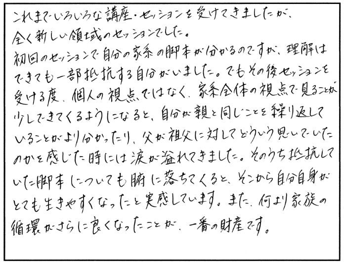 今回は、実際にセッションを受けられた方の、「人生がとても生きやすくなった」というお声をご紹介します。