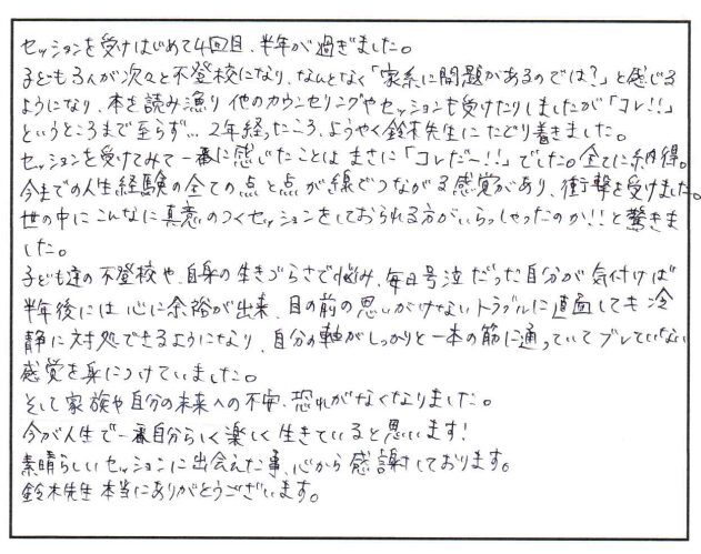 今回は、実際にお子さんの不登校をきっかけにセッションを受けられたお母さまの声をご紹介します。