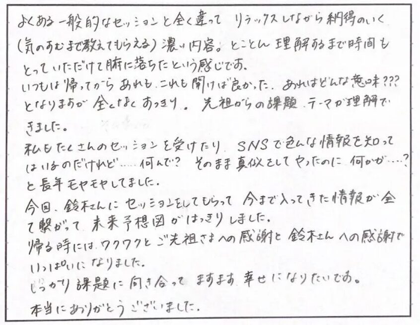 セッションを受けていた頂いた100名以上の方からのうれしい声です。